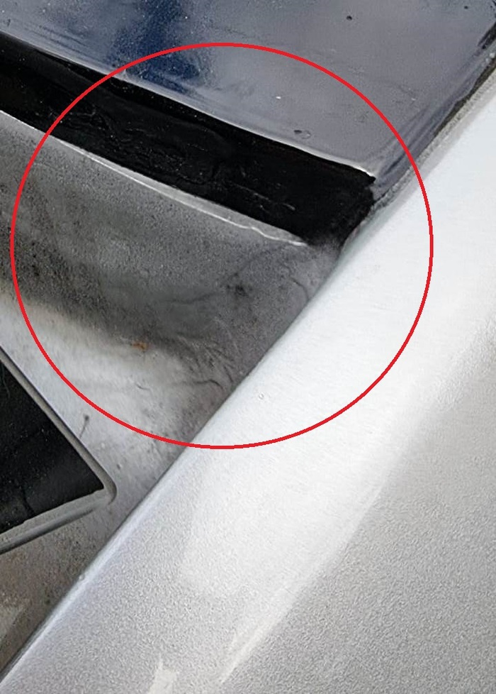 Приближал как мог, сложно передать на фото, но это так крыша покрашена, маленькие кружочки это пыль и грязь, которую решили не убирать, на самом деле её гораздо больше, я просто выделил для наглядности некоторые, а ещё откровенно косячный край. В общем, в живую это выглядит ужасно) Но если вы думаете, что это всё, вы заблуждаетесь: