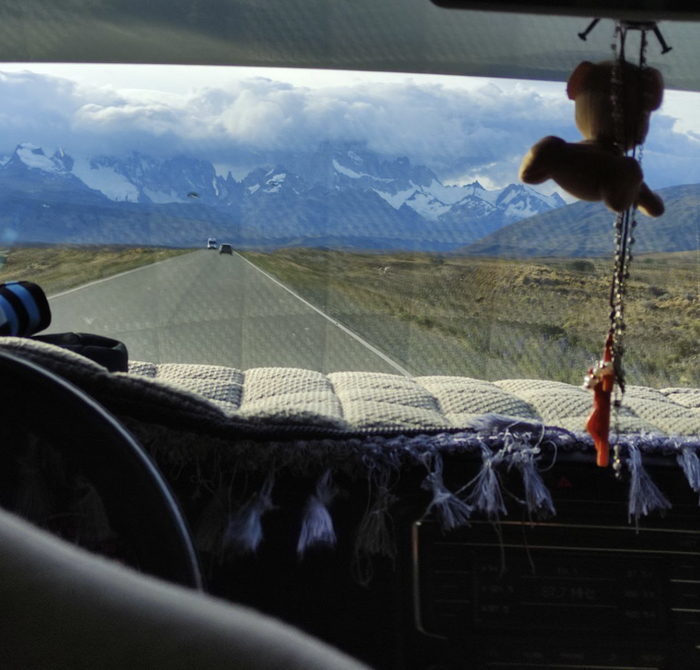 Чем ближе мы подъезжаем к Эль Чалтену, тем яснее становится видно Фитц Рой. Он весь в облаках, но от того становится лишь загадочнее, притягательнее.