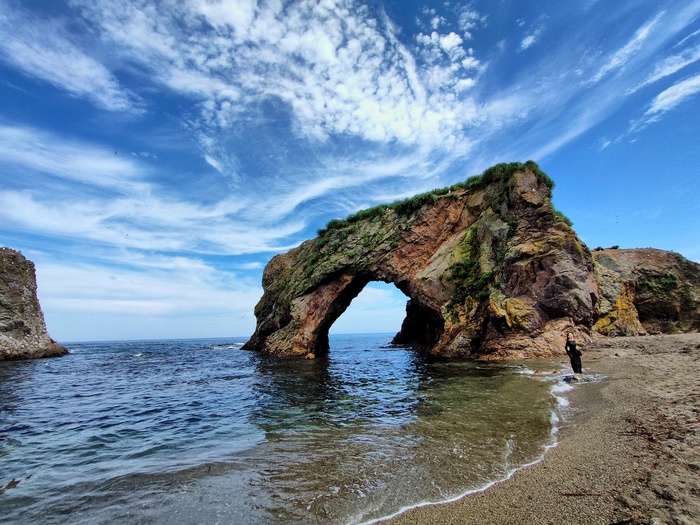 Все вместе плавали на огромном размером с дом пароме по Японскому морю, видели семейство касаток, ходили на лодке по бушующим волнам до маяка Анива, катались туда-сюда по гигантским мостам и рассматривали морских звезд во Владивостоке. Не смогли, но пытались покорить "Пик любви" на Аршане.