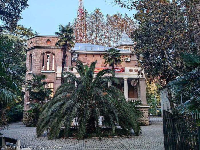 А это вилла «Вера» - одна из первых дач в Сочи. В конце ХІХ века купец Мамонтов купил большой участок земли в долинах рек Сочи и Агура. На одной части поставили привезенный из Ростова-на-Дону сруб, а на другой разбили парк. «Верой» виллу стали называть не просто так. Это имя считается родовым в семействе Мамонтовых, поэтому девочек из поколение в поколение называли именно так. Вот и имению дали любимое имя Мамонтовых. Усадьба находится недалеко от набережной и морского порта Сочи, по адресу: Курортный проспект, 32 Б.