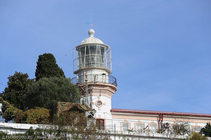 Мало кто из туристов знает, что в Сочи на самом деле два маяка. Тот, что чаще всего изображен на открытках, - новое сооружение. Хотя ряд путеводителей упорно приписывает не принадлежащую ему историю. Навигационный красно-белый маяк, который стоит на пирсе перед зданием Морского вокзала, никакого отношения к этим рассказам не имеет. Главный городской маяк Сочи - тот самый, который сохранился с конца 1800-х, находится на оживленной Приморской набережной и сегодня немного теряется среди других зданий. Фасад его перегорожен магазинами. Сегодня он принадлежит Министерству обороны России. Поэтому зайти внутрь не получится. Его установили по проекту французской фирмы еще в конце 1800-х. Трудно поверить, но он работает до сих пор!