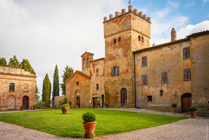 17 тысяч рублей! Во столько мне обошлась ночь в огромном люксе с камином в отеле Abbadia Sicille Relais, стоящем вот уже 761 год на гордом холме тосканского городка Трекуанда. Там я остался на две ночи, принявшись объезжать всё, что послал мне винный регион. Так началось моё автопутешествие по Тоскане..