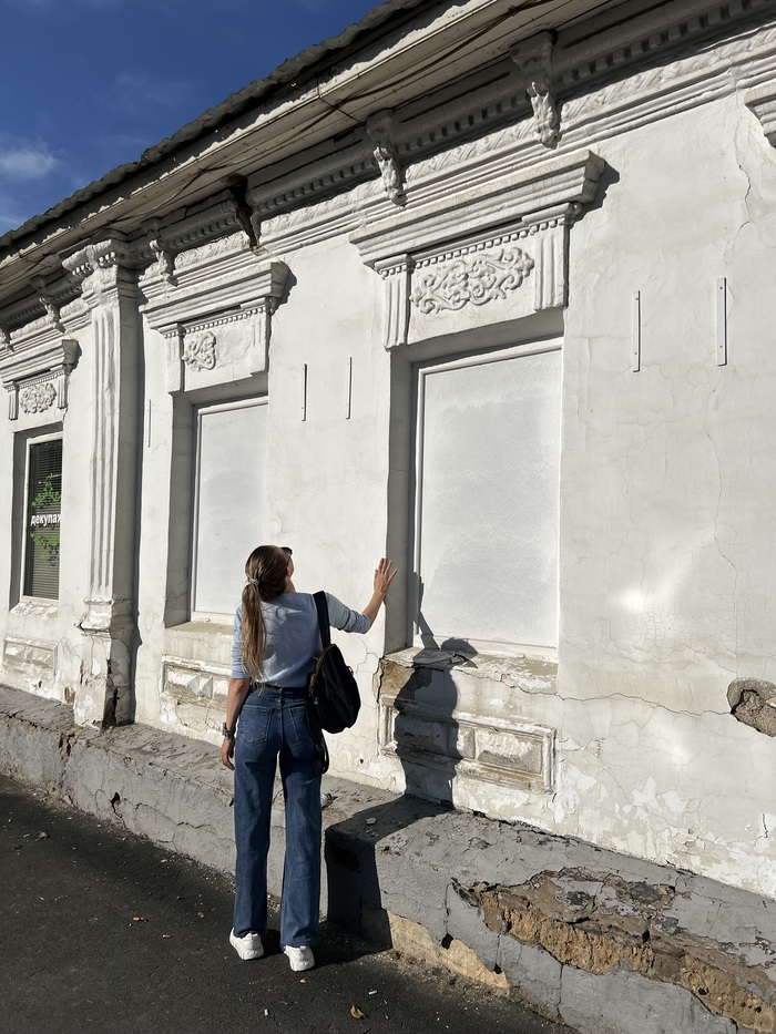 Впервые здесь заметили и пытливый ум архитекторов, смекалку и воображение. Вы когда-то видели лепнину на деревянном срубе? До Оренбурга мы тоже не видели. Видимо, город был очень вдохновлен Питером и выкручивался, как мог. Разглядеть «по-полной» такой объект получилось напротив классного «Фи ка фе». Напротив здания, где мы отлично позавтракали, стояло полуразрушенное, полусгоревшее историческое. Мы подошли рассмотреть ближе. Вот и та самая лепнина на срубе. Такими домами «под богатство» Оренбург прямо полон.