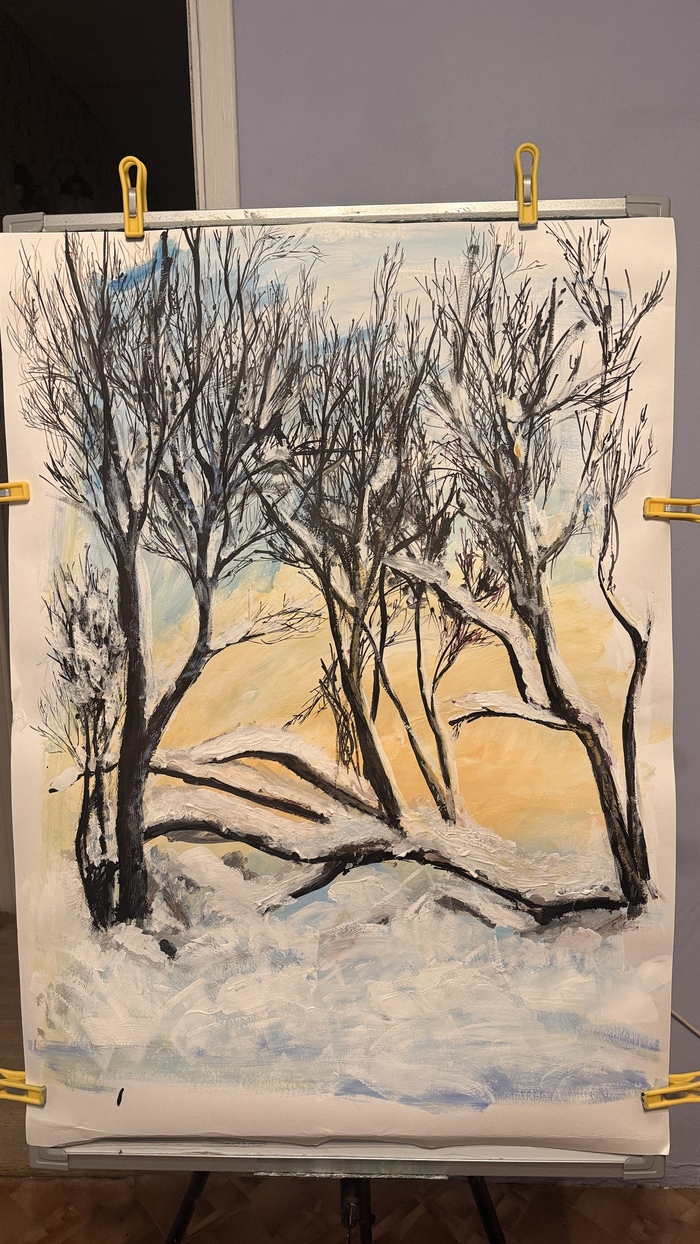 Написала картину (бумага 100% хлопок/акварель 38×54 см) про это самое зимнее чудо ☃️