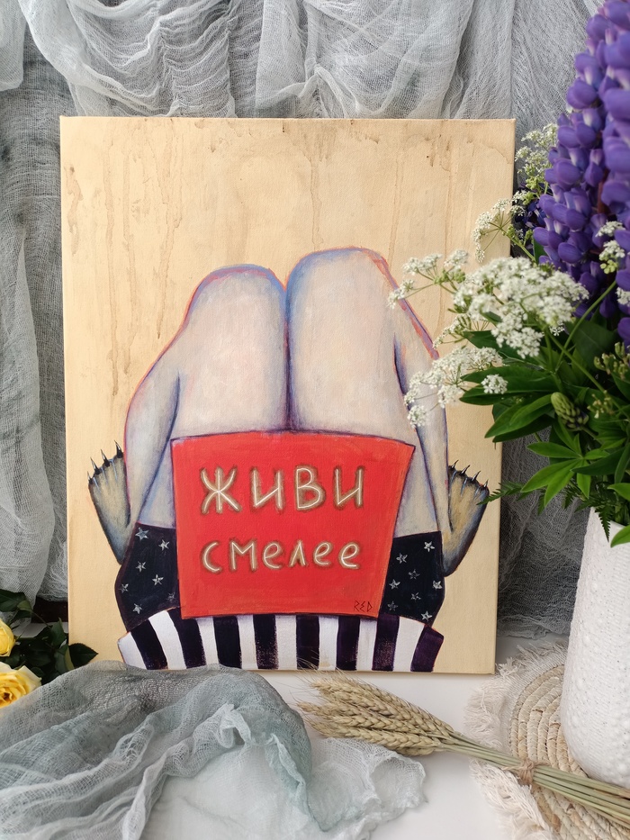 Мотивационная картина размером 40*50. Утолщенный подрамник. Акрил, матовый лак. Иногда не хватает как раз этих самых слов "Живи смелее". Не бойся двигаться к своей мечте, не думай о том, что скажут другие. Картина в наличии.