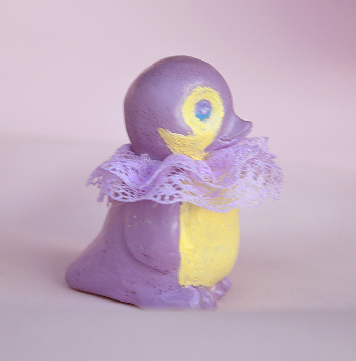 Игрушка выполнена в смешанной техники, сухое валяние + искусственный мех, клювик и лапки из полимерной глины, ручная роспись, рост 13 см.