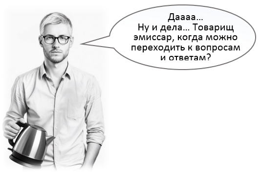 «Я ОПТИМИЗИРУЮ ВРЕМЯ. У ТЕБЯ 7 МИНУТ. Я УЖЕ ПРИГОТОВИЛ КОФЕ. ДВОЙНОЙ ЭСПРЕССО, КАК ВЫ ЛЮБИТЕ. ОН СТОИТ НА КУХНЕ. И Я ПОДОБРАЛ НЕБОЛЬШОЕ БЛЮДО».