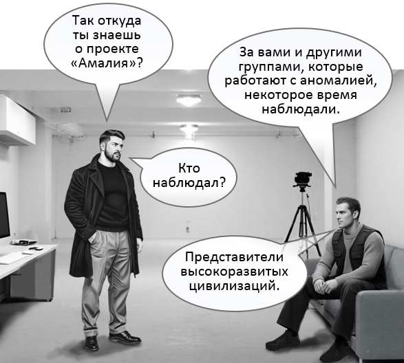 ДЛЯ РУКОВОДСТВА ОНА — “ГЕНИАЛЬНЫЙ УЧЕНЫЙ С УНИКАЛЬНОЙ ИНТУИЦИЕЙ”. ОНА БУДЕТ ДЕЛАТЬ “ОТКРЫТИЯ”, КОТОРЫЕ Я БУДУ ПОДСКАЗЫВАТЬ ЕЙ ЧЕРЕЗ СИСТЕМУ ГОЛОГРАФИЧЕСКИХ ПРОЕКЦИЙ В ЕЕ ЛАБОРАТОРИИ. ТАКЖЕ Я БУДУ СТЕРЕТЬ ЕЕ ЛИЧНЫЕ ЛОГИ И СЛЕДЫ, ЧТОБЫ СКРЫТЬ НАШЕ ВЗАИМОДЕЙСТВИЕ ОТ СИСТЕМ МОНИТОРИНГА».