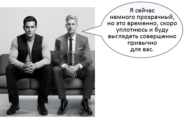 «НЕТ. Я ПРИМЕНЯЮ АЛГОРИТМ “ЭСТЕТИЧЕСКАЯ ГАРМОНИЯ”. ПОВЕРЬ, ЭТО ВАЖНО. ПЕРВОЕ ВПЕЧАТЛЕНИЕ ОПРЕДЕЛЯЕТ 80% ДАЛЬНЕЙШЕГО ВЗАИМОДЕЙСТВИЯ».