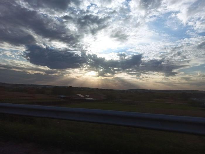 В 10:45 девятого мая меня подобрали на выезде из Казани. Пара, ехали в Чебоксары. Довезли до развилки с М7 (московской трассой) -- чуть дальше Цивильска. Там простоял минут семь, не в пример выезду из столицы Татарстана (около полутора часов), был подобран водителем из Нижнего Новгорода, возвращающимся домой из Казани. С ним мы начали собирать всё: внезапные остановки (две штуки, по делам и потрындеть), светофоры там, где их быть не должно, пробки из ничего (на несколько километров!)... Вместо четырёх (максимум!) часов ехали пять-шесть. В пять вечера он высадил меня на въезде в Нижний, сказав, что М7 проходит через город и я могу спокойно стоять тут же, в кармане, и стопить до Москвы. Доверчивость обернулась полуторачасовым кукованием в этом грешном кармане и подсчётом того, насколько я верблюд. Идиотская совершенно ситуация: минут сорок в кармане вместе со мной стояла легковушка, водитель которой остановился почитать книжку. В итоге, местные направили меня на автобусе через весь город, по сути, на выезд. Панорама с моста через Волгу была восхитительна (благодаря закату, думаю), так что я несколько утешился после бессмысленной медитации на неисчислимые потоки дачников в воскресенье вечером. Несмотря ни на что, я сильно выбивался из графика: ехать-то надо было не совсем в Москву, а в Подольск, то есть -- успеть до закрытия метро.