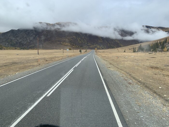 Прощаемся с нашими попутчиками - спасибо за помощь и поддержку! Стоим около получаса, радуясь видам и лениво махая проезжающим машинам. Солнце в зените, впереди еще несколько сотен километров до границы с Китаем. Останавливается неразговорчивый водитель и уезжаем с ним дальше. Виды все симпатичнее отвыкшему от перепада рельефа глазу.