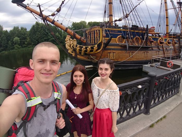 Девушек зовут Маша и Ульяна, у одной из них сегодня день рождения, по-моему у Маши, учатся в местных ВУЗах. Разговаривали ни о чем и обо всем, уже и не помню. Воронеж оказался очень разнообразным. По началу он мне сильно напоминал Тулу, но по мере приближения к реке он все больше похож на Питер (менее богатый, конечно). К реке спускались по достаточно круто уходящим вниз улицам, последний раз такие видел разве что в Крыму, в городах, которые стоят фактически на скалах. По пути к нам привязалась очень жизнерадостная собака, в итоге прошли с ней больше половину пути. Хорошие впечатления город оставил, хотя и увидел я лишь малую его часть.