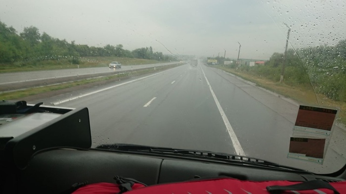 Время близится к 9ти вечера. Глаза уже закрываются, но спать рядом с водителем нельзя ни в коем случае. Состояние крайне паршивое, голод сильно сказывается. Думаю о том, что нужно будет найти на трассе стоянку дальнобойщиков, там точно есть кафе, можно недорого взять тарелку борща и попроситься переночевать где-нибудь на полу в спальнике. Всяко лучше, чем на улице под дождем. Дождь, кстати, периодически заканчивался и даже небо прояснялось, но под Богучаром он все еще шел. Если не разрешат переночевать в кафе, ставить палатку неизвестно где одному в темноте в дождь - совсем так себе.