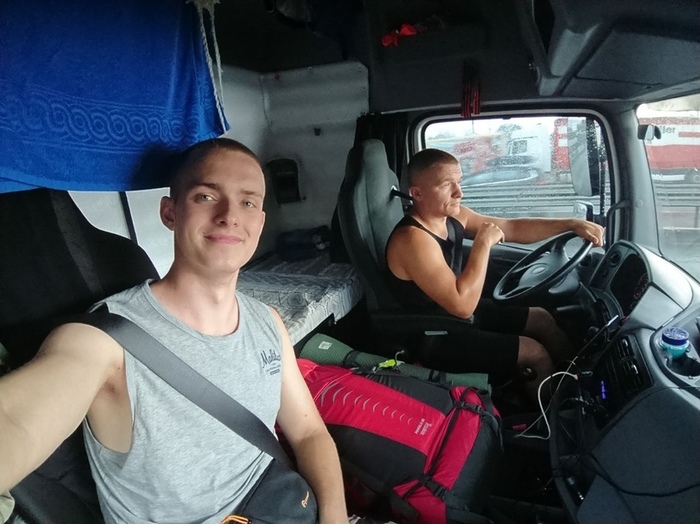 Очень много легковых машин едут загруженные под завязку людьми и вещами - на море. Когда-то и я так ездил с родителями, сладкие воспоминания из детства. Но сейчас я стою с большим рюкзаком на какой-то заправке под Москвой и в надежде уехать дальше машу рукой и вытянутым вверх большим пальцем. В голову закрадываются мысли о том, как хорошо было в своей зоне комфорта и как стремно стоять здесь, посреди неизвестности и надеяться на волю случая. А это я еще в Московской области и как-бы дома. Что будет дальше - пока не представляю.