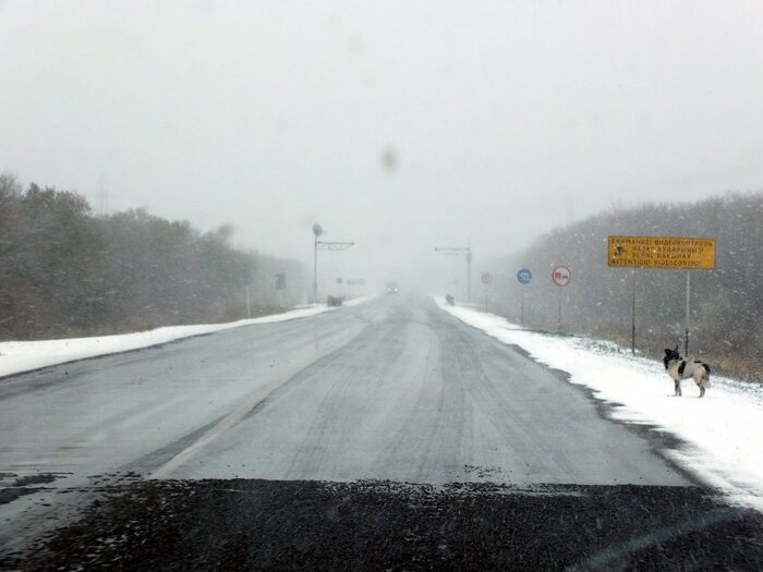 Просыпаемся с рассветом, зябко, греем чай, сборы и дальше. Уезжаем на микроавтобусе, на заправке опять высаживают. Забираем рюкзаки, и почти сразу уезжаем с другой машиной. Добродушный дядька, время от времени останавливающийся на сон у обочины.