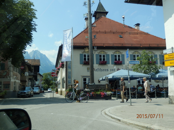 Выехав на немецкий автобан Е51 или № 9 мы направились вниз в сторону Австрии. Наш путь пролегал мимо Nurumberg(Нуренберга), сквозь Мюнгхен и Garmisch-Partenkirchen. Автобан отличный, четырёхполосный, по две полосы в каждую сторону, местами расширяющийся до 6 полос, по 3 в каждую сторону. Количество машин на трассе увеличивалось с приближением к Австрии. Отрезок пути до Мюнхена был практически пустой, скоростных ограничений на трассе совсем мало, бывает например 110 или 80 если имеются ремонтные работы. А часто ограничения скорости сняты вообще. Это указано и знаками и навигатор говорит что скоростных ограничений нет. То есть можно ехать с любой скоростью. На одном пустом участке мы даже разогнались до 170. Но в основной массе все едут со скоростью 120 – 130 километров в час. Конечно есть пролетающие с большой скоростью, но их немного. Кстати, никто и никогда не будет Вам моргать, а подождёт когда освободят ему полосу. Ехать очень комфортно. Мюнхен можно объехать по кольцевой, но мы решили проехать сквозь него, посмотреть на город. Машин много и на многих дорогах Мюнхена идут ремонтные работы. Так что мы проезжали город долго, минут 30. После Мюнхена идёт дорога Е533 или №95 несколько километров с реверсивным движением и полосы довольно узкие. Но затора или пробок нет, когда заканчивается реверсивное движение трасса снова большая и скоростная. Но чем ближе мы к Австрии тем машин всё больше, впрочем, скорость редко опускается ниже 100 километров в час. Уже на подъезде к Garmish-Partenkirchen происходит сужение, трасса заканчивается и машины едут в один ряд. Но не кто не лезет, все друг друга пропускают, так что это заторчик минут на 10. Далее вереницей до города, он здесь совсем рядом.