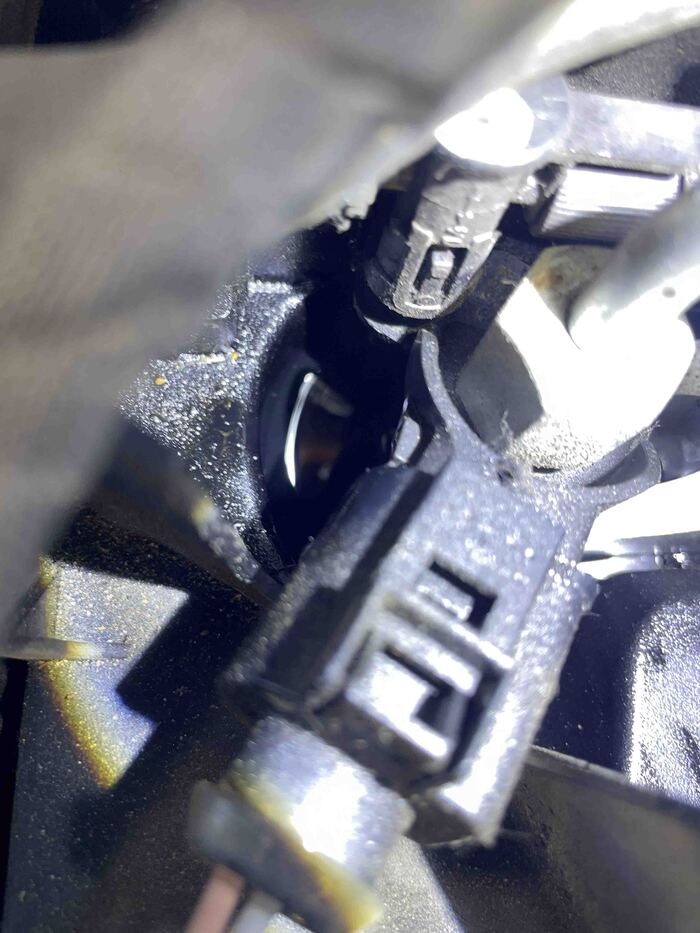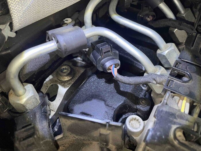 В колодцах полно отработанного дизеля. Там прям лужи. На самом деле это очень опасно. Да, дизельное топливо само по себе не воспламеняется, но все равно, может произойти воспламенение из-за паров и высокой температуры под капотом. Обычно форсунки начинают подтекать на пробеге 150 000 км. и выше. Может быть меняли прокладки форсунок и поменяли криво. Но учитывая сколько там отработки в колодцах, то их меняли или давно, или не меняли вовсе. Ролик натяжения при пуске мотора свистит.