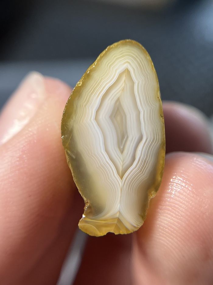 На поверхности камня уже виден рисунок! Я так соскучилась по распилам, что решила выбрать этот сердоликовый агат, что бы уж наверняка порадоваться распилу.