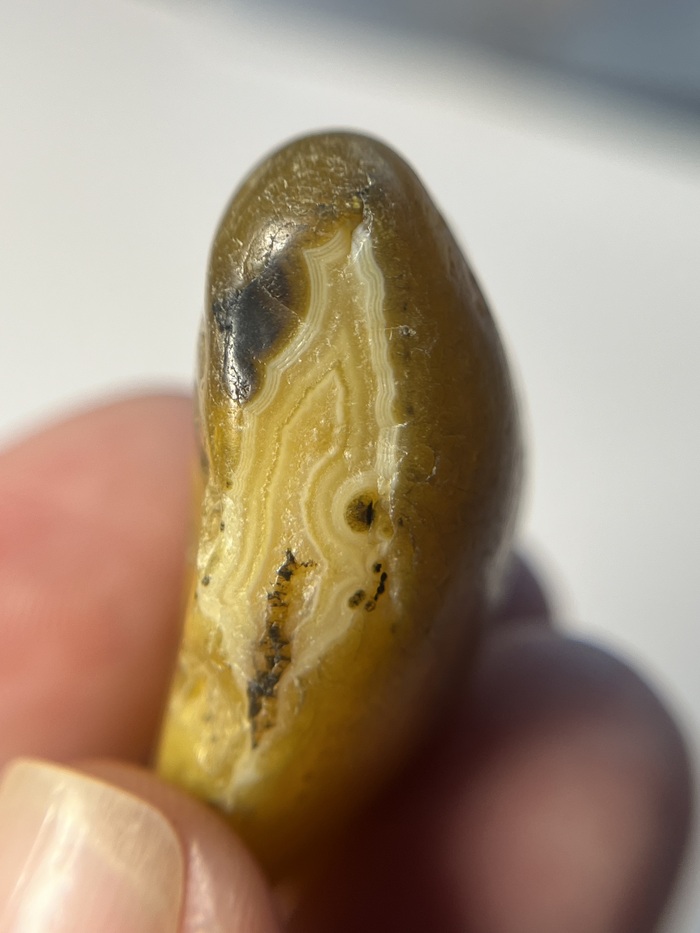 Рисунка на поверхности нет. И тут уже интрига. Будет ли он внутри? Или это обычный сердолик? Я осмотрела камень на просвет, и мне показалось, что есть шанс на рисунок.