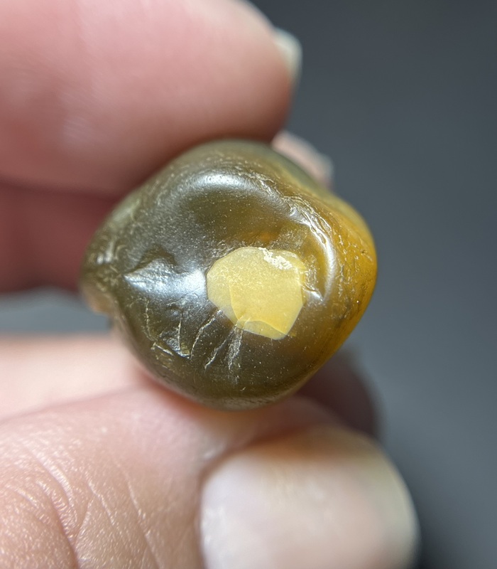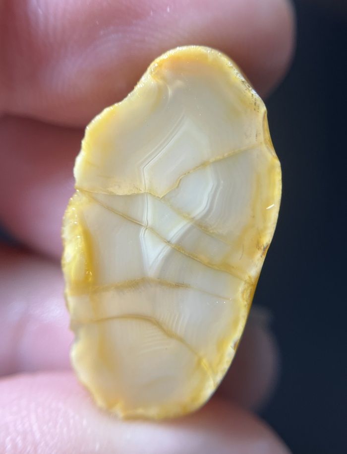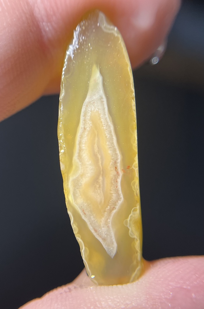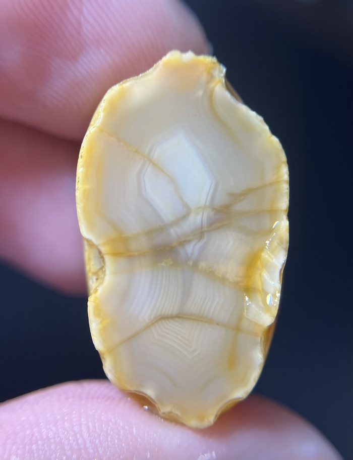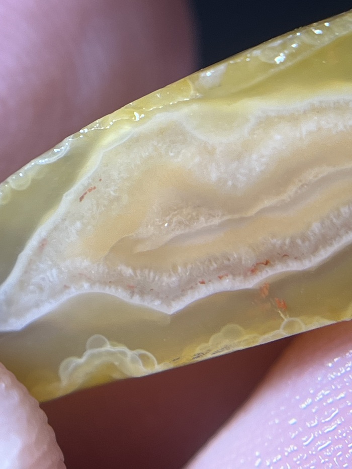 Как забавно получается. 🤔 Я делала ставки на рисунок в белой зоне. Но оказалось, рисунок в виде колец совсем в другом месте. Интересный получился камень. В копилку опыта в направлении распила.