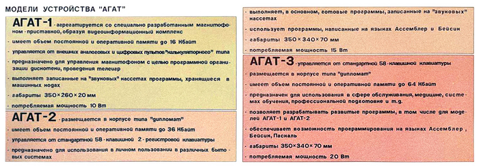 Наивная компьютерная графика из буклета (интересная сама по себе, учитывая год её создания) должна была наглядно проиллюстрировать сферы применения будущих «Агатов».