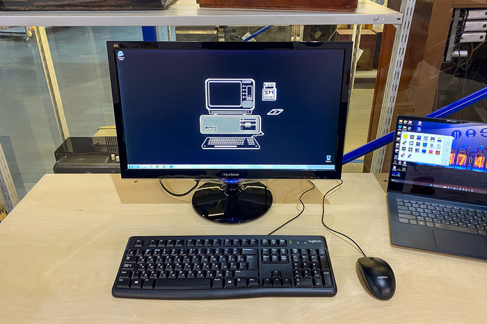 И хотя запускать историческую технику в стенах фондохранилища запрещено, мы нашли компромиссный вариант, позволивший нашим гостям не смотреть в выключенные мониторы. Автор популярного эмулятора «Агатов» Олег Одинцов разрешил нам использовать свою разработку на выставке, да ещё и специально модифицировал её, чтобы корректно работали все программы, которые мы хотели показать.