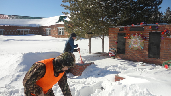 По мимо помощи ветеранам мы так же приводим в порядок памятники и обелиски. Убираем от снега и возлагаем цветы.