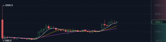 2500 долларов, резкое падение до 500 и сейчас в районе 1500.