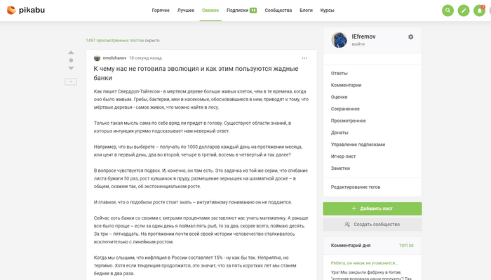 Если вам не нравится новая "челка", рейтинг комментаторов или еще какие-то элементы интерфейса - адблок!