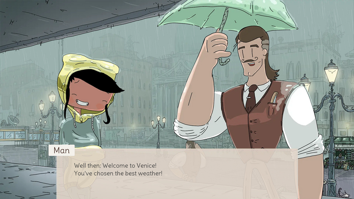 Нетипичный взгляд на Венецию: не туристический рай, а плохая погода, своеобразный общественный транспорт и люди, косо глядящие на ИИ-компаньона.