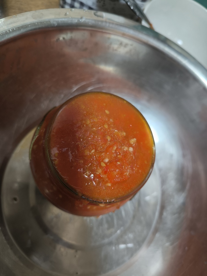 Полученную массу ещё раз измельчите, хорошо перемешайте и разложите по стерилизованным банкам.