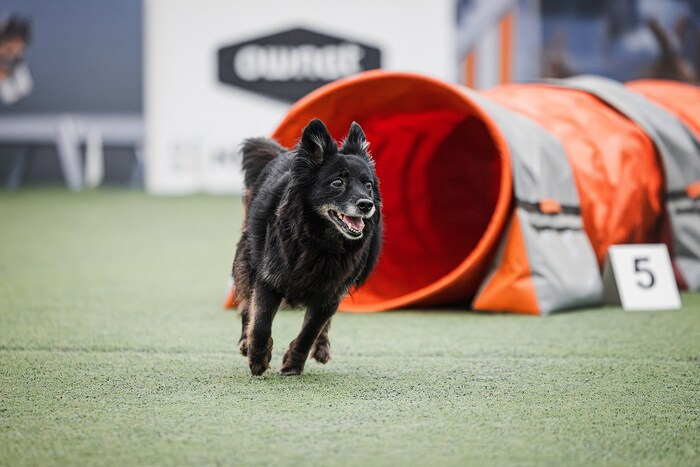 Для тех, кто не знает: аджилити включает в себя различные снаряды (барьеры, тоннели, качели, слалом). Собака должна пройти трассу быстро и без ошибок, слушая указания хозяина.