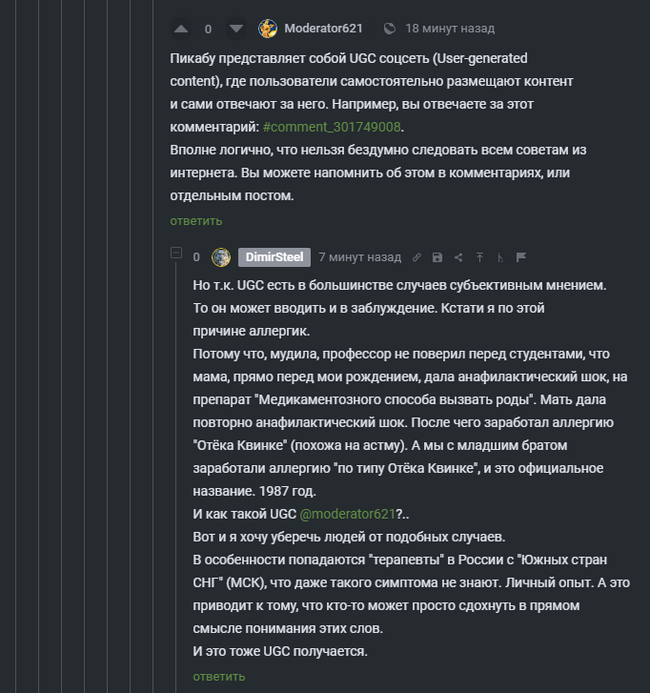 Народ. Среди нас есть аллергологи и юристы по здравоохранению? Можете объяснить администрации ПИКАБЫ, что тут не UGS?