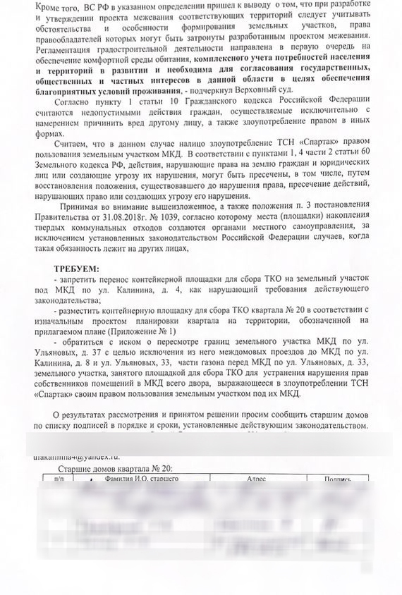 Жители 12 домов собрали подписи и написали официальный запрос письмо в Администрацию нашего района с просьбой прекратить необоснованный перенос мусорных контейнеров в наши дворы а просто поставить новые баки и привести в порядок площадку где всегда стояли мусорные контейнеры по плану. Подписи были собраны, письмо отправлено. Фото прилагаю ниже(личные данные по понятным причинам скрыты)