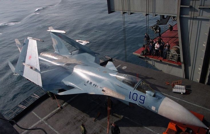 Фото на память после испытаний эксплуатации макета Як-44Э на ТАКР "Тбилиси" пр.11435, сентябрь 1990 г.