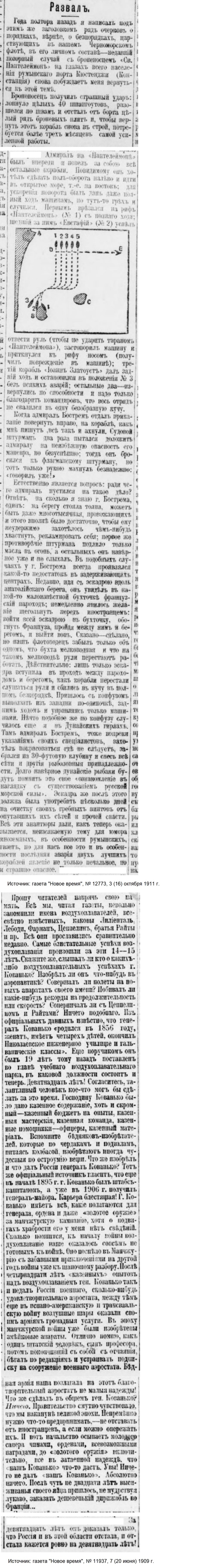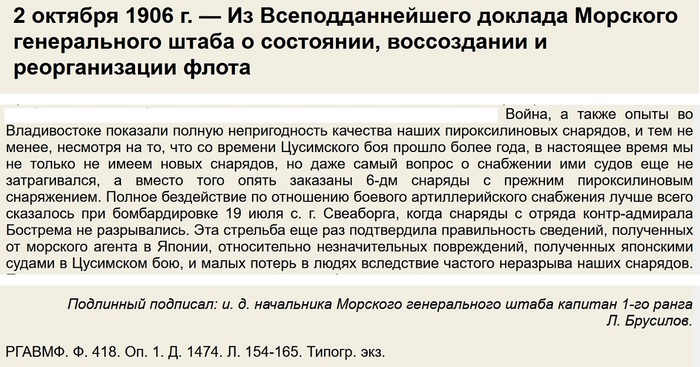Источник: Вл. Семеновъ. "Флотъ и Морское вѣдомство до Цусимы и послѣ." Печать типографiи Т-ва М. О. Вольфъ. С.-Петербургъ. Вас. остр. 16 линiя. соб. домъ. 1911 г.