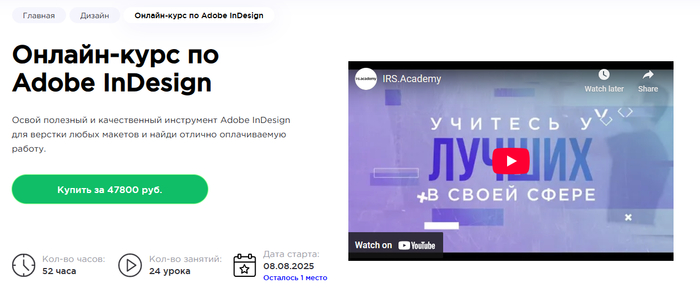Adobe InDesign от irs.academy — лучший курс по типографике и печатной верстке.