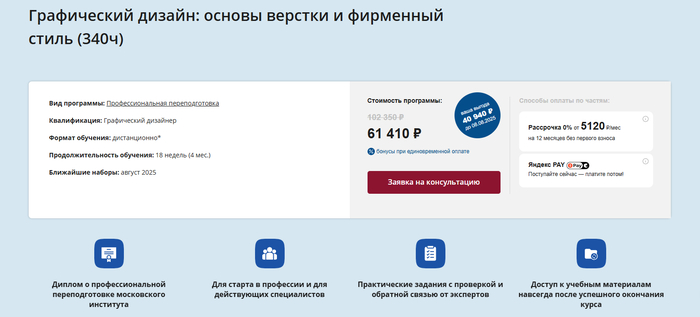 Кому подойдет: тем, кто хочет получить квалификацию графического дизайнера с нуля, систематизировать знания по верстке и освоить работу в InDesign в составе полной дизайнерской подготовки.