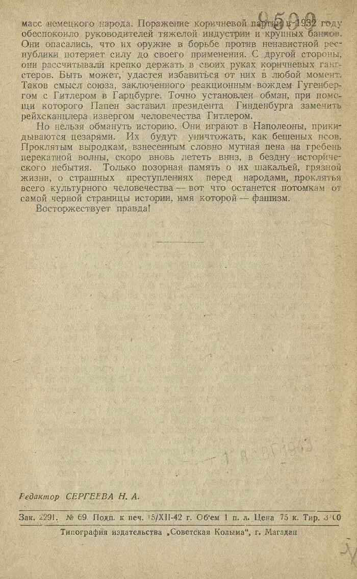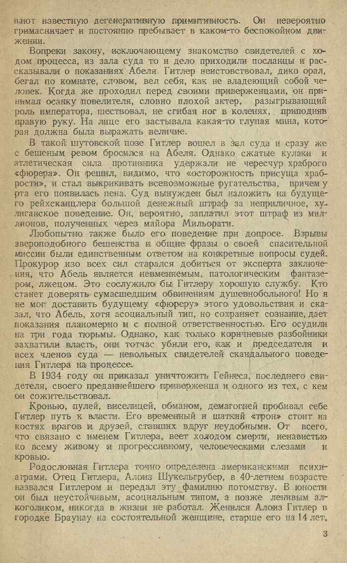 Поздравляю Вас с победой на выборах тчк Надеюсь на возможность нашего прогрессивного сотрудничества тчк Рассчитываю на Вашу помощь в предоставлении мне и моей семье политического убежища зпт рассматриваю как страну дальнейшего проживания любое зпт на ваше усмотрение зпт государство латинской Америки тчк В случае положительного решения зпт обязуюсь предоставить все технологические и иные достижения Великой Германии в распоряжение правительства Соединённых Штатов Америки тчк Я знаю зпт что вы зпт возможно зпт относитесь предвзято к моей личности тчк Прошу судить меня не как жестокого политика зпт а как творческого гения зпт равных которому планета не знала до селе тчк Я художник создавший величайшее по своим масштабом батальное полотнище тчк Гений зпт породивший новый формат творчества тчк Кистями мне служили славные войска Вермахта зпт а холстом Европа тчк Я создал величайшее произведение искусств тире кровопролитнейшую войну вскл И написал образ величайшего антагониста человечества тире себя самого тчк Пожертвовал простой человеческой жизнью зпт ради этой трагической роли тчк И ох зпт как нескоро человечество увидит подобного мне величием злодея вскл»