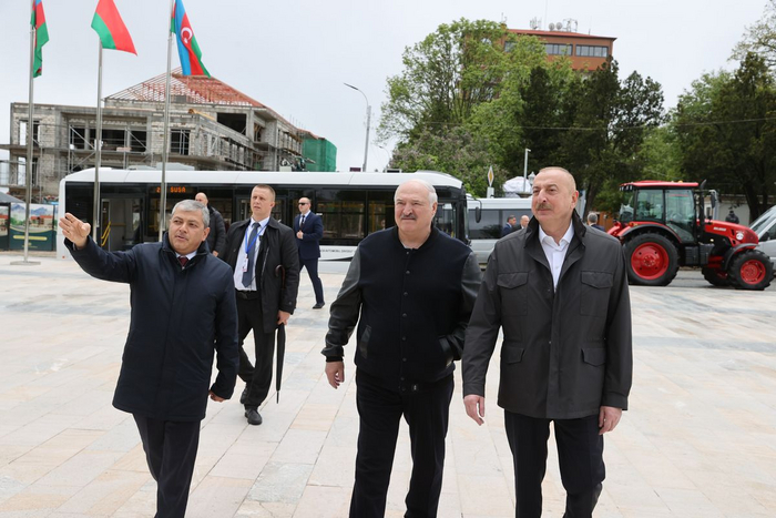 Президент Азербайджана и представители местной власти подробно рассказали Александру Лукашенко о планах развития города и района, этапах восстановительных работ.