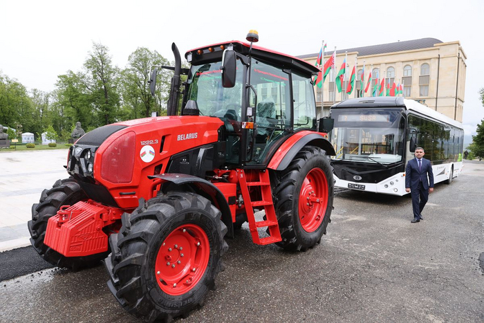 Не обошлось и без ценных и полезных подарков. Глава государства передал в дар городу тракторы «Беларус». Технику эту не просто знают: более 80 процентов местного рынка занимают наши сельхозмашины, совместно выпускаемые на Гянджинском автомобильном заводе. Но лишние железные помощники на возрождаемых территориях не помешают.