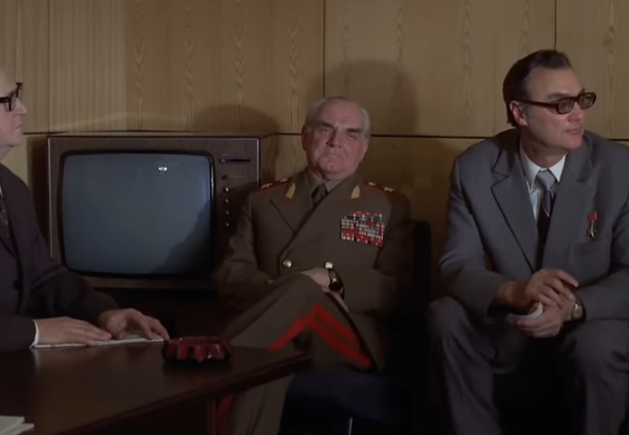 Не стал исключением и небольшой эпизод в "Мимино", где его генерал, терпеливо дожидающийся своей очереди на приём, поясняет всем соседям по приёмной, что пришёл тот самый Волохов.