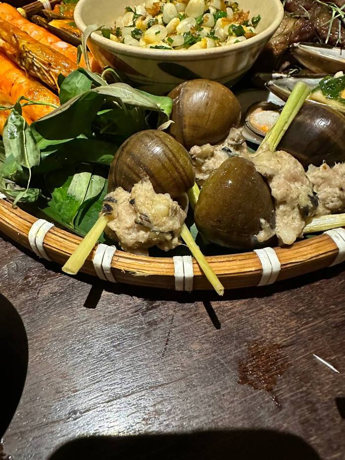 2) Улитки оказались не простыми, а смешенными со свининой. В целом вкусно. Сами улитки на вкус, как мидии или что-то типа того.