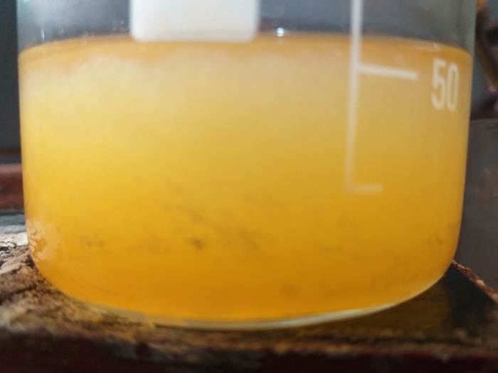 Вверху выделившиеся соли, внизу выпавший осадок.