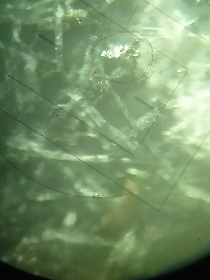 Вчера был рядом с местом где по моему мнению находится месторождение металла по имени Argentum. Поэтому решил сделать количественный анализ и заодно подтвердить наличие этого металла. Набрал пару целлофановых мешочков материала и поехал домой. Дама просеял и сделал попытку как то обогатить собранное мной, я засыпал получившееся в мензурку на 25 мл. и залил разбавленной азотной кислотой. Примерно через час я отфильтровал состав, промыл его водой и в получившийся раствор бросил мочевину для гашения азотки. После этого добавил в раствор порошок цинка. Пошла реакция, но из за наличия в растворе присутствующих силикатов из матерьяла, цинк полностью не прореагировал, это я увидел отфильтровав раствор и рассмотрев выделенный осадок. Выделенный осадок, я бросил обратно в мензурку и залил туда же соляной кислоты, добавив немного азотки. Все это сначала, простояло примерно час без подогрева, потом примерно полчаса с кипячением и после этого фильтрация. После фильтрации, в раствор брошена мочевина и выпал желтый осадок, каких то солей. Соли я отфильтровал, а вот в отфильтрованном растворе выпал самостоятельно осадок состоящий из коричневатого и сероватого цветов выделений. При микроскопировании некоторые структуры выпавшего осадка содержали в себе микроскопические включения похожие на металл.