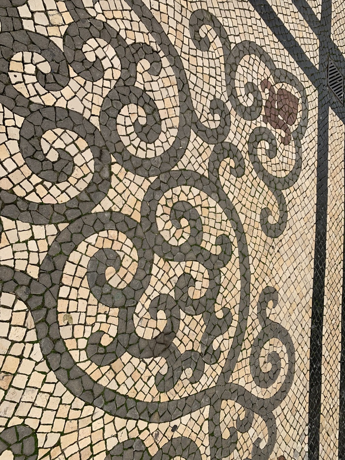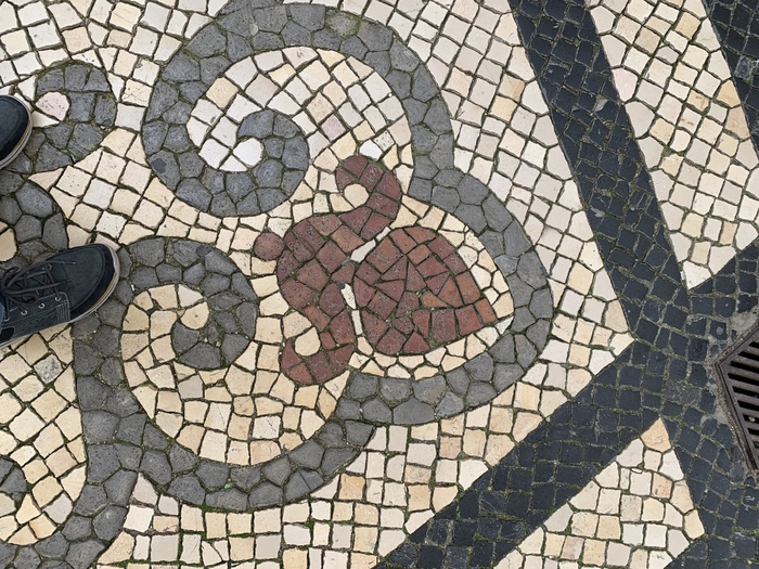 Улицы тоже вымощены плиткой с узорами. Возможно, это уже и не азулежу, но тем не менее, очень красиво. Можно просто ходить по улицам, рассматривая мозаику на мостовых и плитку на стенах. И там есть что рассматривать. Например, на центральной улице Фару каждая лилия выложена по-разному. Но если бы мне не сказали, я бы и не заметил.