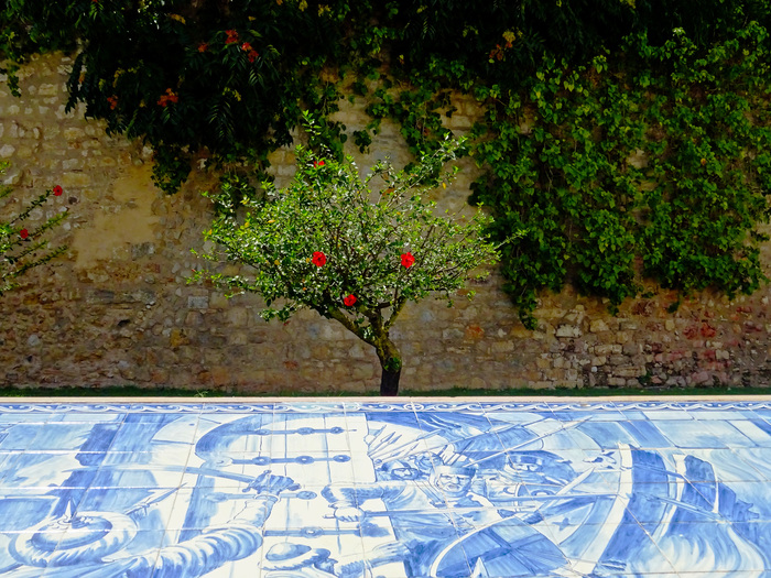 У португальской плитки даже свое название – азулежу. Произошло от арабского الزليج (az-zulayj) – полированный камень. Ну, соответственно, и пришло из арабской культуры. Самые старые азулежу относятся к 15 веку – ими был украшен королевский дворец в Синтре.