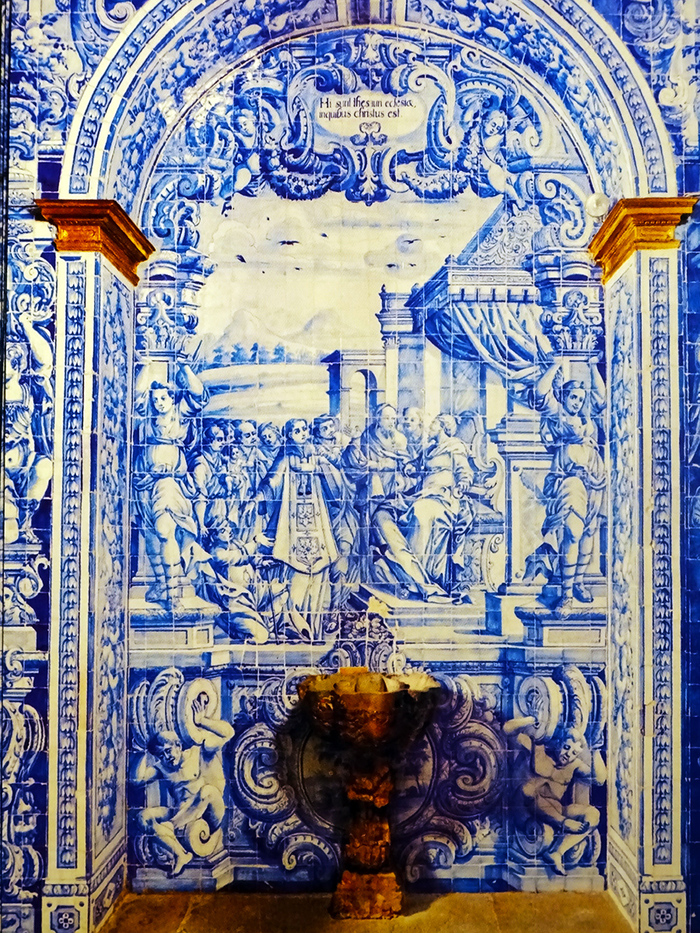 Сзади - ещё одно азулежу, на котором изображен святой Лаврентий с решеткой для гриля в руках.