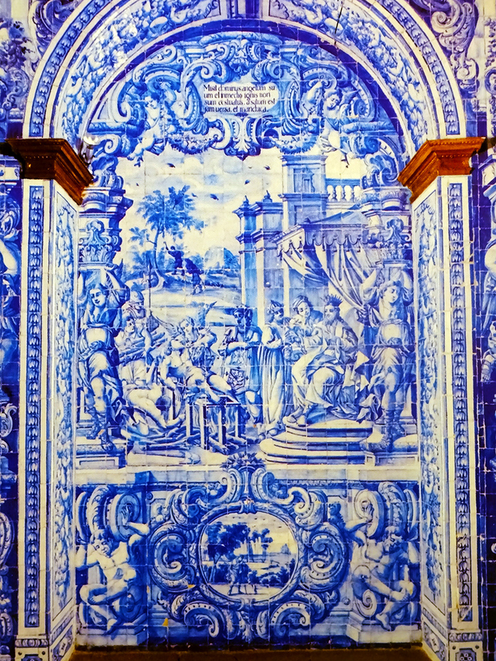 Ещё здесь есть азулежные панно с историей города. После вестготов, в VIII веке Фару захватили сарацины. А на панно ниже изображено, как Афонсу III (в XIII веке) захватывает Фару обратно.
