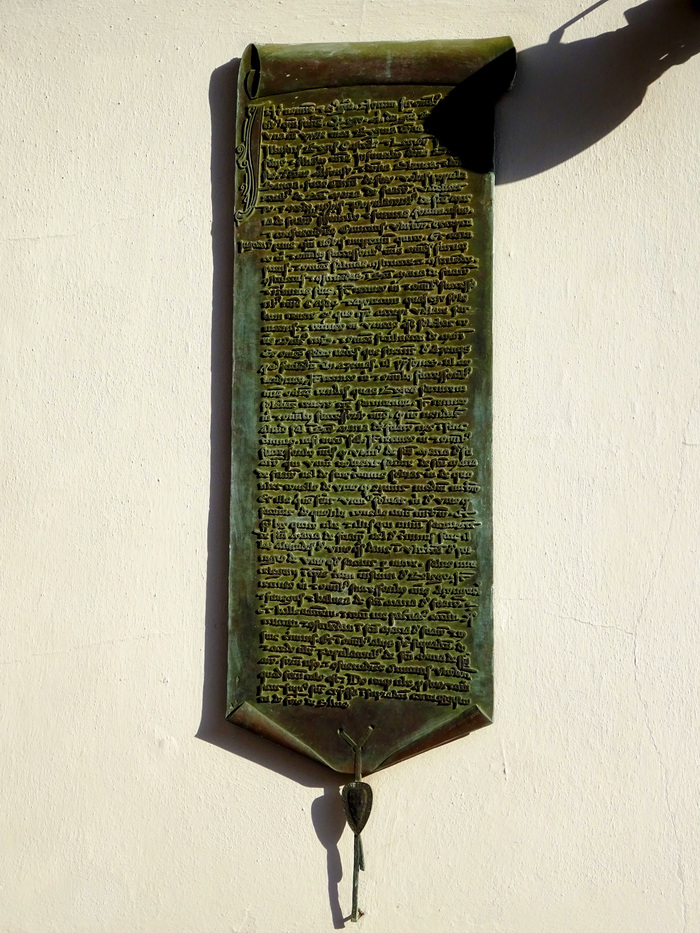 Внутри неё повешен металлический свиток, текст которого, увы, я не разобрал.